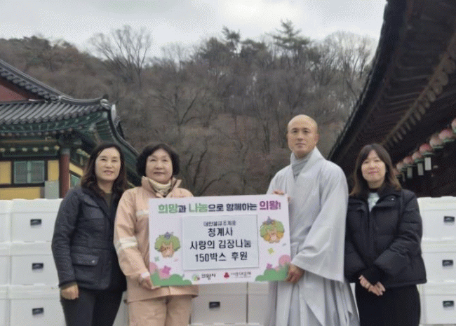[NWS¹æ¼Û=Çѽ¸ñ ±âÀÚ]Àǿսô û°è»ç(ÁÖÁö ¼ºÇེ´Ô)¿Í »ç´Ü¹ýÀÎ ¸¶ÀÌÆ®¸®°¡ ÃÖ±Ù Á÷Á¢ Ű¿î ³ó»ê¹°·Î ´ã±Ù ±èÀå±èÄ¡ 150»óÀÚ¸¦ ¾î·Á¿î ÀÌ¿ôµéÀ» À§ÇØ ÈÄ¿øÇß´Ù°í ¹àÇû´Ù. À̹ø ±èÀå ³ª´®Àº Áö¿ª»çȸ Ãë¾à°èÃþÀÇ µû¶æÇÑ °Ü¿ï³ª±â Áö¿ø¡¦