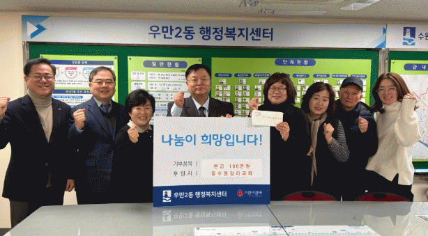 [NWS¹æ¼Û=Çѽ¸ñ ±âÀÚ]¼ö¿ø½Ã ÆÈ´Þ±¸ ¿ì¸¸2µ¿ Áö¿ª»çȸº¸ÀåÇùÀÇü´Â Áö³­ 5ÀÏ, µ¿¼ö¿ø°¨¸®±³È¸¿Í ÇÔ²² °ü³» Ãë¾à°èÃþÀ» Áö¿øÇϱâ À§ÇÑ ÈÄ¿ø±Ý Àü´Þ½ÄÀ» ÁøÇàÇß´Ù. µ¿¼ö¿ø°¨¸®±³È¸(´ãÀÓ¸ñ»ç ¿ÀºÀ±Ù)´Â À̳¯ ÀÌ¿ô»ç¶û ½ÇõÀÇ ÀÏȯÀ¸·Î ÈÄ¡¦