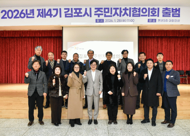 [NWS¹æ¼Û=Çѽ¸ñ ±âÀÚ]2026³â Á¦4±â ÁÖ¹ÎÀÚÄ¡ÇùÀÇȸ°¡ Ãâ¹üÇÏ¸ç »õ·Î¿î µµ¾àÀ» ¾Ë·È´Ù. ±èÆ÷½Ã´Â 28ÀÏ ½Ãû ´ëȸÀǽǿ¡¼­ 14°³ À¾?¸é?µ¿ 4±â ÁÖ¹ÎÀÚġȸÀåÀ¸·Î ±¸¼ºµÈ ÁÖ¹ÎÀÚÄ¡ÇùÀÇȸÀÇ Ã¹ Á¤±âȸÀǸ¦ °³ÃÖÇϰí, º»°ÝÀûÀÎ 4±â ÁÖ¹ÎÀÚġȸ¡¦