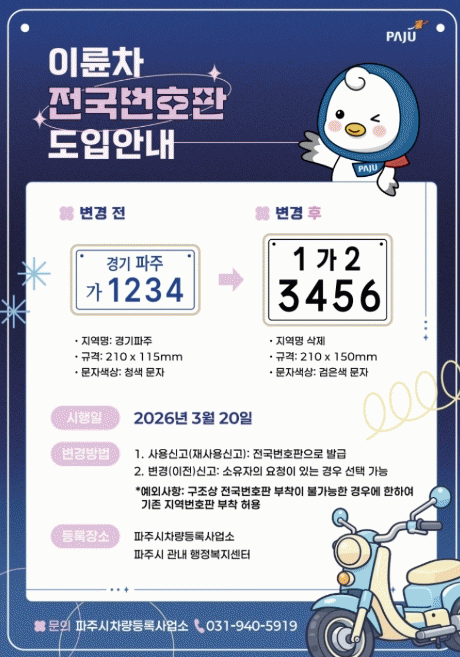 [»çȸ] ÆÄÁÖ½Ã, 20ÀϺÎÅÍ ÀÌ·ûÂ÷ Àü±¹¹øÈ£ÆÇ º»°Ý ½ÃÇà |2026. 03.19