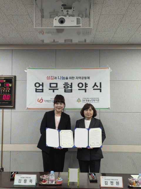 [NWS¹æ¼Û=Çѽ¸ñ ±âÀÚ]¼ö¿ø½Ã Àå¾È±¸ Ä¡¸Å¾È½É¼¾ÅÍ¿Í SKû¼Ö³ëÀκ¹Áö°üÀÌ Ä¡¸Å°ü¸®»ç¾÷°ú ³ëÀκ¹Áö Ȱ¼ºÈ­¸¦ À§ÇÑ ¾÷¹«Çù¾àÀ» ü°áÇϰí, Çù·ÂÀ» ¾à¼ÓÇß´Ù. 18ÀÏ SKû¼Ö³ëÀκ¹Áö°ü¿¡¼­ ¿­¸° Çù¾à½Ä¿¡´Â ±è¿ë¿Á SKû¼Ö³ëÀκ¹Áö°üÀå, ±èÁ¤¿ø¡¦