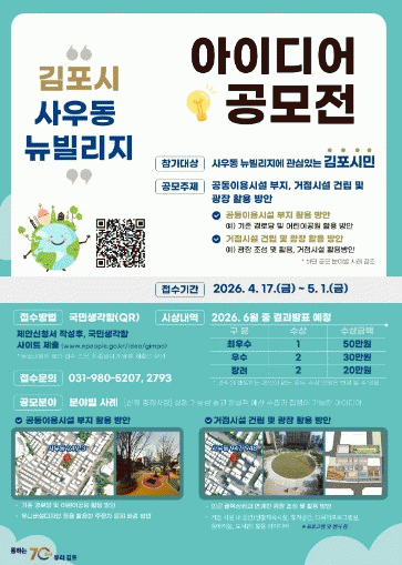 [»çȸ] ±èÆ÷½Ã, ¡®2026 »ç¿ìµ¿ ´ººô¸®Áö ½Ã¹Î ¾ÆÀ̵ð¾î °ø¸ðÀü¡¯ °³ÃÖ |2026. 04.17