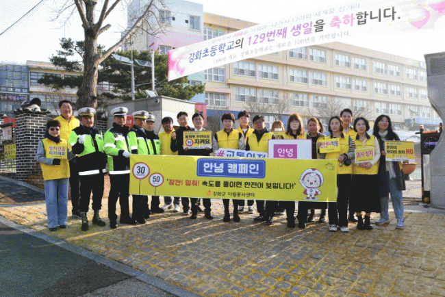 [NWS¹æ¼Û=Çѽ¸ñ ±âÀÚ]°­È­±º ÀÚ¿øºÀ»ç¼¾ÅͰ¡ Áö³­ 7ÀÏ °­È­ÃʵîÇб³¿¡¼­ ¡°Àá±ñ! ¸ØÃç! ¼Óµµ¸¦ ÁÙÀÌ¸é ¾ÈÀüÀÌ º¸ÀÔ´Ï´Ù¡±À̶ó´Â ½½·Î°Ç ¾Æ·¡ ±³Åë¾ÈÀü Ä·ÆäÀÎÀ» ÁøÇàÇß´Ù. À̹ø Ä·ÆäÀÎÀº ¹Ú¿ëö °­È­±º¼ö, °­È­ÃʵîÇб³ Çкθðȸ, ¿î¿µ¡¦
