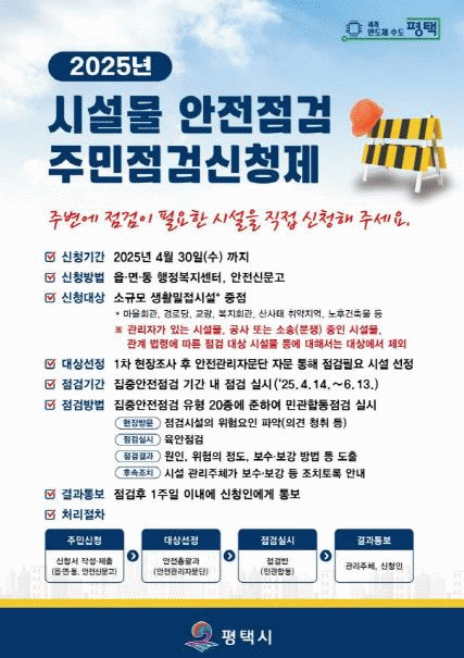 [»çȸ] ÆòÅýÃ, 2025³â ½Ã¼³¹° ¾ÈÀü Á¡°Ë 'ÁÖ¹ÎÁ¡°Ë½ÅûÁ¦' ¿î¿µ |2025. 04.08