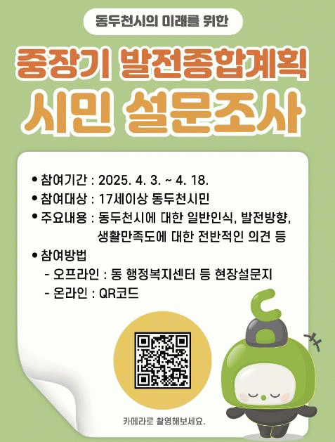 [»çȸ] µ¿µÎõ½Ã, ÁßÀå±â¹ßÀüÁ¾ÇÕ°èȹ ¼ö¸³À» À§ÇÑ ½Ã¹Î ¼³¹®Á¶»ç ½Ç½Ã |2025. 04.08