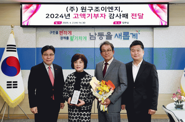[NWS¹æ¼Û=Çѽ¸ñ ±âÀÚ]ÀÎõ½Ã ³²µ¿±¸´Â ÀÎõ»çȸº¹Áö°øµ¿¸ð±Ýȸ ±âÁØ¿¡ µû¶ó 2024³â °í¾×±âºÎÀÚ·Î ¼±Á¤µÈ ¢ß¿ø±¸Á¶ÀÌ¿£Áö Àü¾Ö¿µ ´ëÇ¥ÀÌ»ç¿Í ¢ß½Å½ÂÀÌ¿£Áö ±è½Â°ï ´ëÇ¥À̻翡 °¨»çÆÐ¸¦ Àü´ÞÇß´Ù°í 8ÀÏ ÀüÇß´Ù. ¢ß¿ø±¸Á¶ÀÌ¿£Áö¿Í ¢ß½Å½ÂÀÌ¡¦