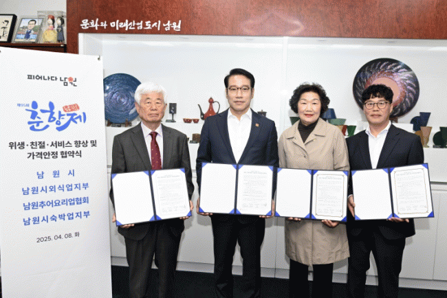 [NWS¹æ¼Û=Çѽ¸ñ ±âÀÚ] ³²¿ø½Ã´Â 4¿ù 30ÀϺÎÅÍ 5¿ù 06ÀϱîÁö °³ÃֵǴ Á¦95ȸ ÃáÇâÁ¦¸¦ ¾ÕµÎ°í Çѱ¹¿Ü½Ä¾÷Áß¾Óȸ ³²¿ø½ÃÁöºÎ, ³²¿øÃß¾î¿ä¸®¾÷Çùȸ, ´ëÇѼ÷¹Ú¾÷Áß¾Óȸ ³²¿ø½ÃÁöºÎ¿Í ÃáÇâÁ¦ Çà»çÀÇ ¼º°øÀûÀÎ °³ÃÖ ¹× Áö¿ª°æÁ¦ Ȱ¼ºÈ­¸¦ À§ÇÏ¡¦