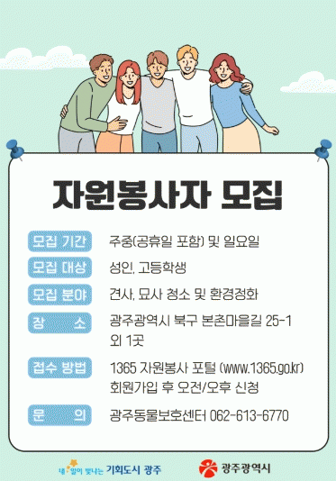 [»çȸ] ±¤ÁÖ±¤¿ª½Ã, µ¿¹°º¸È£¼¾ÅÍ ÀÚ¿øºÀ»çÀÚ ¼ö½Ã ¸ðÁý |2025. 04.08