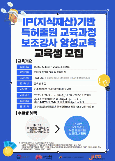 [NWS¹æ¼Û=Çѽ¸ñ ±âÀÚ]ÀüÁֽð¡ Ãë¾÷Ãë¾à°èÃþÀÎ ÁßÀå³â¡¤°æ·Â´ÜÀý¿©¼ºµéÀ» IP(Áö½ÄÀç»ê)±â¹Ý ƯÇãÃâ¿ø ±³À°°úÁ¤ÀÇ Àü¹® º¸Á¶°­»ç·Î ¾ç¼ºÅ°·Î Çß´Ù. ½Ã¿Í (Àç)ÀüÁÖÁ¤º¸¹®È­»ê¾÷ÁøÈï¿øÀº ¿ÃÇØ ÀüÁֽà ±³À°¹ßÀüƯ±¸ »ç¾÷ÀÇ ÀÏȯÀÎ ¡®IP(Áö½Ä¡¦