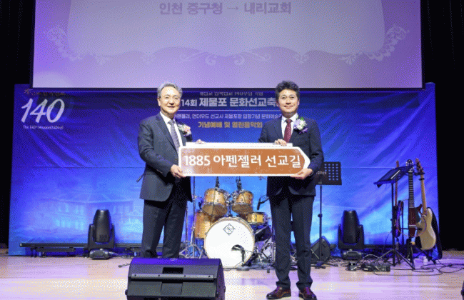 [NWS¹æ¼Û=Çѽ¸ñ ±âÀÚ]±èÁ¤Çå ÀÎõ Áß±¸Ã»ÀåÀÌ Áö³­ 5ÀÏ ³»¸®±³È¸ ºñÀü¼¾ÅÍ¿¡¼­ ¿­¸° ¡®1885¾ÆÆæÁ©·¯ ¼Ç±³±æ ¸í¿¹µµ·Î¸í ÇöÆÇ½Ä¡¯¿¡ Âü¼®ÇØ ¡°1885³â 4¿ù 5ÀÏ, ºÎȰÀý¿¡ Á¦¹°Æ÷Ç×À» ÅëÇØ ÀÌ ¶¥¿¡ º¹À½ÀÇ ¾¾¾ÑÀ» »Ñ¸° ¾ÆÆæÁ©·¯ ¼±±³»çÀÇ °í¡¦