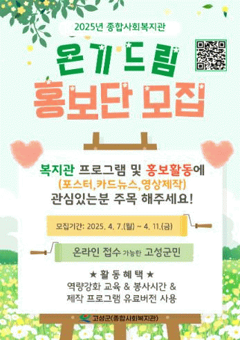 [»çȸ] °í¼º±º, º¹ÁöÀÇ ¿Â±â¸¦ SNS·Î ÀüÆÄ! ¡®¿Â±âµå¸² È«º¸´Ü¡¯ ¸ðÁý ½ÃÀÛ |2025. 04.08