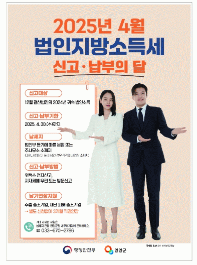 [»çȸ] ¾ç¾ç±º, 2025³â ¹ýÀÎÁö¹æ¼Òµæ¼¼ ½Å°í¡¤³³ºÎ ¾È³» |2025. 04.08
