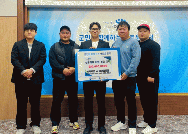 [NWS¹æ¼Û=Çѽ¸ñ ±âÀÚ]¾ç±¸±º4-H¿¬ÇÕȸ¿Í 5°³ ½Ã±º 4-H¿¬ÇÕȸ(°­¸ª, ȫõ, Æòâ, ö¿ø, °í¼º)´Â »êºÒ·Î Å« ÇÇÇØ°¡ ¹ß»ýÇÑ ¿µ´ö±ºÀ» ¹æ¹®ÇÏ¿© »êºÒ ÇÇÇØ º¹±¸ ¼º±Ý 1000¸¸¿øÀ» ±âŹÇß´Ù.
