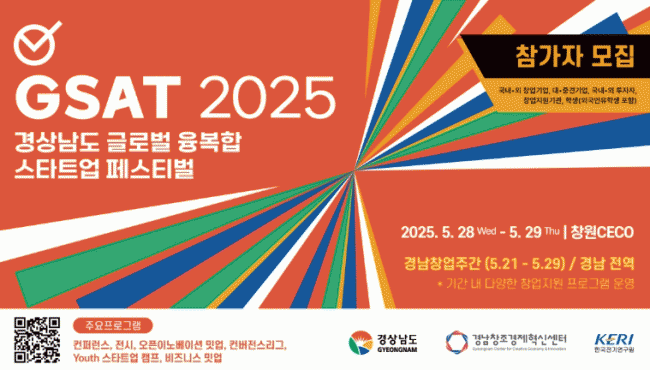 [NWS¹æ¼Û=ÇãÀº¼­ ±âÀÚ]°æ»ó³²µµ´Â ±Û·Î¹ú À¶º¹ÇÕ Ã¢¾÷ Æä½ºÆ¼¹ú ¡®GSAT 2025¡¯ÀÇ Âü¿© ±â¾÷À» °ø½Ä ´©¸®ÁýÀ» ÅëÇØ »çÀü ¸ðÁý ÁßÀ̶ó°í ¹àÇû´Ù. ¿ÃÇØ·Î 2ȸ°¸¦ ¸Â´Â GSATÀº ¿À´Â 5¿ù 28ÀϺÎÅÍ 29ÀϱîÁö ¾çÀϰ£ â¿øÄÁº¥¼Ç¼¾ÅÍ¿¡¼­ °³Ãֵȡ¦