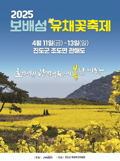 [NWS¹æ¼Û=Çѽ¸ñ ±âÀÚ]Áøµµ±ºÀº Á¶µµ¸é °ü¸Åµµ¿¡¼­ º½ÀÇ Çâ±â °¡µæÇÑ ¡®º¸¹è¼¶ À¯Ã¤²É ÃàÁ¦¡¯°¡ ¿À´Â 4¿ù 11ÀϺÎÅÍ 13ÀϱîÁö 3ÀÏ µ¿¾È °³ÃÖµÈ´Ù°í ¹àÇû´Ù. ¿ÃÇØ ÃàÁ¦ÀÇ ±¸È£(½½·Î°Ç)´Â ¡°¿À¸Þ! °ü¸Åµµ¿¡ º½ ¿Ô¾î¶ó¡±·Î °ü¸Åµµ¸¦ ã´Â °ü¡¦