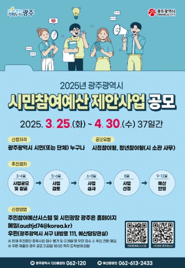 [»çȸ] ±¤ÁÖ±¤¿ª½Ã, ½Ã¹ÎÂü¿©¿¹»ê Á¦¾È»ç¾÷ °ø¸ð |2025. 04.08