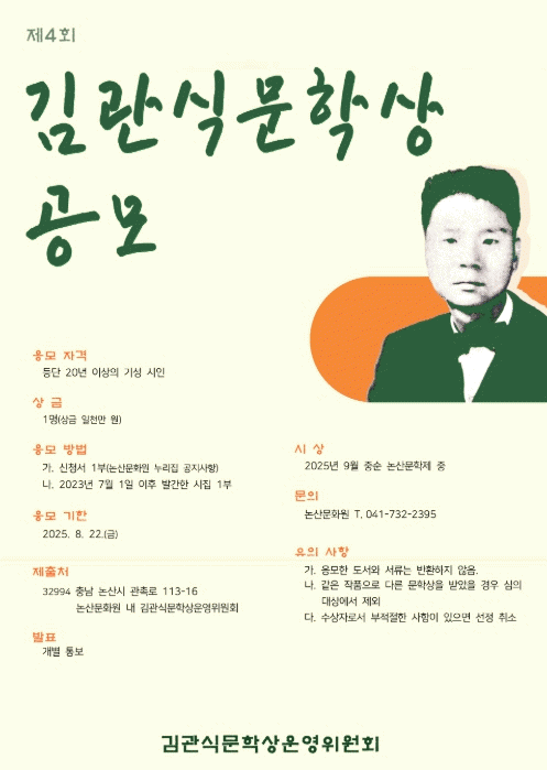 [»çȸ] ³í»ê¹®È­¿ø, ±â°³ÀÇ ½ÃÀÎ ±è°ü½Ä ¹®ÇÐ»ó °ø¸ð |2025. 04.08
