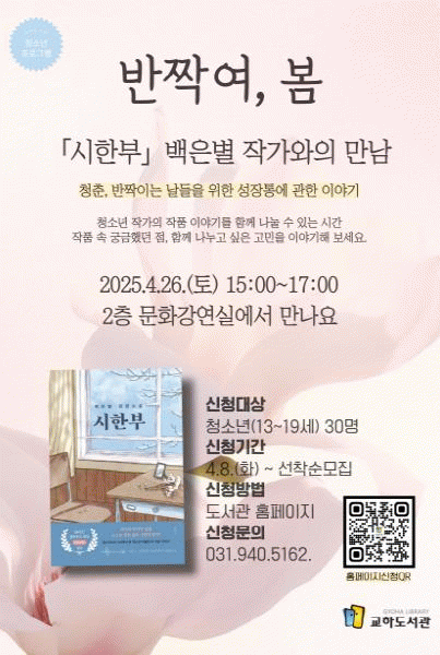 [NWS¹æ¼Û=Çѽ¸ñ ±âÀÚ]ÆÄÁֽà ±³Çϵµ¼­°üÀº ¿À´Â 13ÀÏ Ã»¼Ò³â¿¡°Ô ¸¹Àº »ç¶ûÀ» ¹Þ°í Àִ û¼Ò³â ¼Ò¼³ '½ÃÇѺÎ'ÀÇ ÀúÀÚÀÎ ¹éÀºº° ÀÛ°¡¿ÍÀÇ ¸¸³²À» ÁøÇàÇÑ´Ù. À̹ø ÀÛ°¡¿ÍÀÇ ¸¸³²Àº ±³Çϵµ¼­°üÀÌ ¸Å´Þ ½ÃÀǼº ÀÖ´Â ÁÖÁ¦¸¦ Á¤ÇØ ÁøÇàÇÏ°í ¡¦