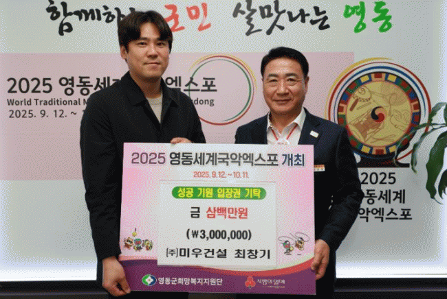 [NWS¹æ¼Û=Çѽ¸ñ ±âÀÚ] ¢ß¹Ì¿ì°Ç¼³ÀÌ Áö³­ 7ÀÏ 2025 ¿µµ¿¼¼°è±¹¾Ç¿¢½ºÆ÷ÀÇ ¼º°ø °³ÃÖ¸¦ ±â¿øÇϸç 300¸¸¿øÀ» ¿µµ¿±º¿¡ ±âŹÇß´Ù. À̳¯ ±âŹµÈ ¼º±ÝÀº ¿¢½ºÆ÷ ÀÔÀå±Ç ±¸¸ÅÁö¿ø¿¡ »ç¿ëµÉ ¿¹Á¤ÀÌ´Ù. ÃÖâ±â ´ëÇ¥´Â ¡°¿¢½ºÆ÷°¡ Áö¿ª °æÁ¦¡¦