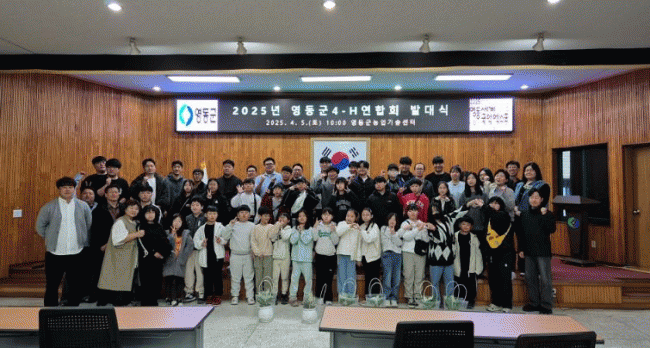 [NWS¹æ¼Û=Çѽ¸ñ ±âÀÚ]ÃæºÏ ¿µµ¿±º 4-H¿¬ÇÕȸ´Â Áö³­ 5ÀÏ ¿µµ¿±º³ó¾÷±â¼ú¼¾ÅÍ¿¡¼­ Çлýȸ¿ø°ú ¿µ³óȸ¿ø µî 60¿© ¸íÀÌ Âü¼®ÇÑ °¡¿îµ¥ ¡®2025³â ¿µµ¿±º4-H¿¬ÇÕȸ ¹ß´ë½Ä¡¯À» °³ÃÖÇß´Ù°í ¹àÇû´Ù. À̳¯ Çà»ç´Â û¼Ò³â 4-Hȸ¿øµéÀÌ 4-H ±âº»¡¦