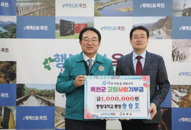 [NWS¹æ¼Û=Çѽ¸ñ ±âÀÚ]¼Û½ÂÈ£ ÃæÃ»´ëÇб³ ÃÑÀåÀÌ 8ÀÏ °íÇâ»ç¶û±âºÎ±Ý 100¸¸ ¿øÀ» ±âŹÇÏ¸ç ¿ÃÇØ·Î 3³â° µû¶æÇÑ ³ª´®À» À̾°í ÀÖ´Ù. ¿Áõ±º ¸í¿¹±º¹ÎÀ¸·Î ¼±Á¤µÇ±âµµ ÇÑ ¼Û ÃÑÀåÀº Ȳ±Ôö ¿Áõ±º¼ö¿Í ³²´ëÀü°íµîÇб³ µ¿¹®À¸·Î, ²ö²öÇÑ¡¦