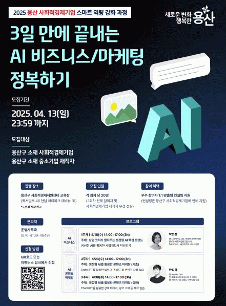 [»çȸ] "3ÀÏ ¸¸¿¡ AI ½Ç¹« ¸¶½ºÅÍ!" ¿ë»ê±¸, »çȸÀû°æÁ¦±â¾÷ ´ë»ó AI Ȱ¿ë ¸¶ÄÉÆÃ ±³À° ½Ç½Ã |2025. 04.08