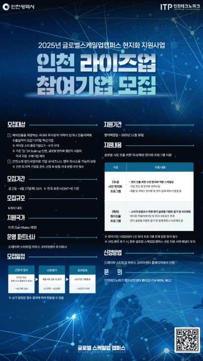 [»çȸ] ÀÎõTP, ¡®ÀÎõ ¶óÀÌÁî¾÷¡¯ ¹Ì±¹ ÁøÃâ ÇÁ·Î±×·¥ Âü¿©±â¾÷ ¸ðÁý |2025. 04.08