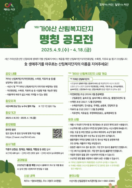 [»çȸ] ¼­»ê½Ã, '(°¡Äª)°¡¾ß»ê »ê¸²º¹Áö´ÜÁö' ¸íĪ °ø¸ð ÃßÁø |2025. 04.08