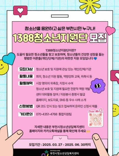 [»çȸ] ¡°Ã»¼Ò³âÀ» À§ÇÑ µû¶æÇÑ ³×Æ®¿öÅ©, ºÎõÇü 1388û¼Ò³âÁö¿ø´Ü ¸ðÁý¡± |2025. 04.07