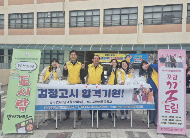 [NWS¹æ¼Û=Çѽ¸ñ ±âÀÚ]Æ÷Ç×½Ãû¼Ò³âÀç´Ü Çб³¹Ûû¼Ò³âÁö¿ø¼¾ÅÍ¿¡¼­ Áö³­ 5ÀÏ Æ÷Ç×À̵¿ÁßÇб³¿¡¼­ 2025³â Á¦1ȸ ÃÊ¡¤Áß¡¤°íÁ¹ °ËÁ¤°í½Ã¿¡ ÀÀ½ÃÇÏ´Â Çб³ ¹Û û¼Ò³âµéÀ» ÀÀ¿øÇß´Ù. À̳¯ Æ÷Ç׽à ²Þµå¸²À» ÅëÇØ °ËÁ¤°í½Ã¿¡ ¿ø¼­¸¦ Á¢¼öÇÑ 10¡¦