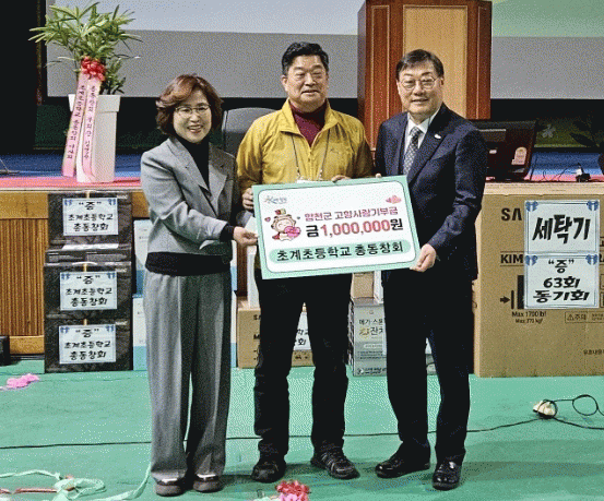 [NWS¹æ¼Û=Çѽ¸ñ ±âÀÚ]ÇÕõ±º ÃʰèÃʵîÇб³ Ãѵ¿Ã¢È¸ À̼±°Ç ȸÀåÀÌ ÇÕõ±º¿¡ °íÇâ»ç¶û±âºÎ±ÝÀ» ±âŹÇÏ¸ç °íÇâ»ç¶ûÀ» ½ÇõÇß´Ù. 5ÀÏ ÃʰèÃʵîÇб³ ¿îµ¿Àå¿¡¼­ °³ÃÖµÈ Á¦ 26ȸ Ãѵ¿Ã¢È¸ °³È¸½Ä ÇöÀå¿¡¼­ À̼±°Ç Ãѵ¿Ã¢È¸ÀåÀº °íÇâ»ç¶û ±â¡¦