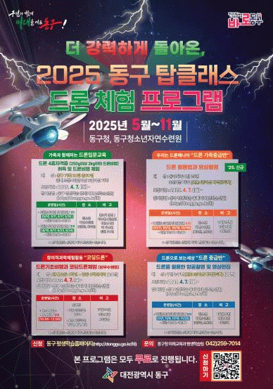 [NWS¹æ¼Û=Çѽ¸ñ ±âÀÚ]´ëÀü µ¿±¸´Â ¿À´Â 5¿ùºÎÅÍ 11¿ù±îÁö ±¸Ã» ¹× µ¿±¸ û¼Ò³âÀÚ¿¬¼ö·Ã¿ø¿¡¼­ ¡®2025 µ¿±¸ µå·Ð üÇè ÇÁ·Î±×·¥¡¯À» º»°Ý ¿î¿µÇÑ´Ù°í 7ÀÏ ¹àÇû´Ù. µ¿±¸ µå·Ð üÇè ÇÁ·Î±×·¥Àº Áö³­ 2³â ¿¬¼Ó ¼±Âø¼ø Á¶±â¸¶°¨°ú Âü°¡ÀÚ ¡¦