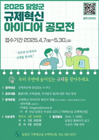 [»çȸ] ´ã¾ç±º, '2025 ±ÔÁ¦Çõ½Å ¾ÆÀ̵ð¾î °ø¸ðÀü' °³ÃÖ¡¦ »ýȰ ¼Ó ºÒÆí ±ÔÁ¦ °³¼± ³ª¼­ |2025. 04.07