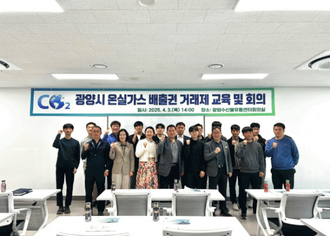 [NWS¹æ¼Û=Çѽ¸ñ ±âÀÚ]±¤¾ç½Ã´Â Áö³­ 3ÀÏ ±¤¾ç¼ö»ê¹°À¯Åë¼¾ÅÍ È¸Àǽǿ¡¼­ ȯ°æ±âÃʽü³ ´ã´ç °ø¹«¿øÀ» ´ë»óÀ¸·Î ¿Â½Ç°¡½º ¹èÃâ±Ç°Å·¡Á¦ ¿ª·® °­È­¸¦ À§ÇÑ ±³À°À» ÁøÇàÇß´Ù°í 7ÀÏ ¹àÇû´Ù. ¿Â½Ç°¡½º ¹èÃâ±Ç°Å·¡Á¦´Â ±¹°¡¿Â½Ç°¡½º °¨Ãà¸ñÇ¥¡¦