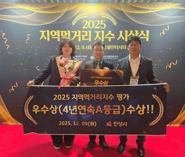 [»çȸ] ¾È¼º½Ã, Áö¿ª¸Ô°Å¸®Áö¼ö 4³â¿¬¼Ó ¿ì¼ö ÁöÀÚü ¼±Á¤ |2025. 12.10