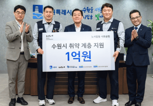 [NWS¹æ¼Û=Çѽ¸ñ ±âÀÚ]±â¾Æ(ÁÖ) ³ë»ç°¡ ¡°¼ö¿ø½Ã Ãë¾à°èÃþ Áö¿ø¿¡ »ç¿ëÇØ´Þ¶ó¡±¸ç 1¾ï ¿øÀ» Çѱ¹»çȸº¹ÁöÇùÀÇȸ¿¡ ±âŹÇß´Ù. ±âºÎ±ÝÀº ¼ö¿ø½Ã»çȸº¹ÁöÇùÀÇȸ¸¦ ÅëÇØ ¼ö¿ø½Ã º¹Áö»ç°¢Áö´ë¿Í Ãë¾à°èÃþ Áö¿ø¿¡ »ç¿ëµÉ ¿¹Á¤ÀÌ´Ù. 12¿ù 31ÀÏ¡¦
