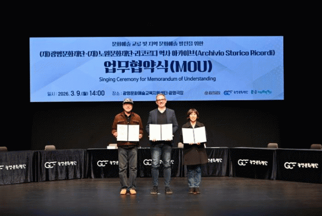 [NWS¹æ¼Û=Çѽ¸ñ ±âÀÚ](Àç)±¤¸í¹®È­Àç´ÜÀº 3¿ù 9ÀÏ ¿ÀÈÄ 2½Ã ±¤¸í±ØÀå¿¡¼­ (Àç)³ë¿ø¹®È­Àç´Ü, ¸®ÄÚ¸£µð ¿ª»ç ¾ÆÄ«À̺ê(Archivio Storico Ricordi)(ÀÌÇÏ ¸®ÄÚ¸£µð)¿Í ¡®¹®È­¿¹¼ú ±³·ù ¹× Áö¿ª ¹®È­¿¹¼ú ¹ßÀü¡¯À» À§ÇÑ ¾÷¹«Çù¾à(MOU)À» ü°á¡¦