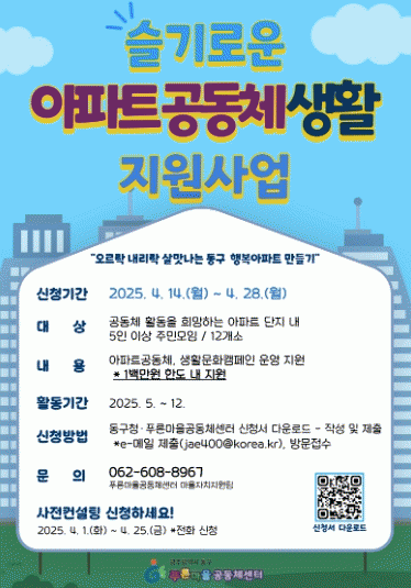[NWS¹æ¼Û=Çѽ¸ñ ±âÀÚ]±¤ÁÖ µ¿±¸´Â ¡®2025 ½½±â·Î¿î ¾ÆÆÄÆ®°øµ¿Ã¼ »ýȰ Áö¿ø»ç¾÷¡¯À» º»°ÝÀûÀ¸·Î ÃßÁøÇÔ¿¡ µû¶ó ¿À´Â 14ÀϺÎÅÍ »ç¾÷¿¡ Âü¿©ÇÒ °øµ¿Ã¼¸¦ ¸ðÁýÇÑ´Ù°í ¹àÇû´Ù. Ǫ¸¥¸¶À»°øµ¿Ã¼¼¾ÅͰ¡ ÁÖ°üÇÏ´Â À̹ø »ç¾÷Àº ¾ÆÆÄÆ® ³» ÁֹΠ¡¦