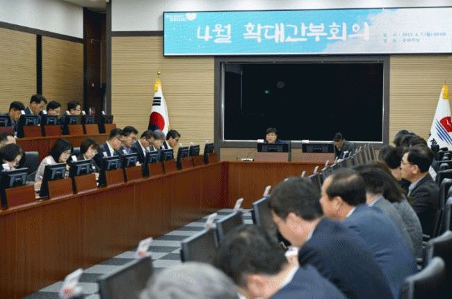 [NWS¹æ¼Û=Çѽ¸ñ ±âÀÚ]°ÅÁ¦½Ã´Â 7ÀÏ º¯±¤¿ë °ÅÁ¦½ÃÀå ÁÖÀç·Î È®´ë°£ºÎȸÀǸ¦ °¡Á³´Ù°í ¹àÇû´Ù. À̹ø ȸÀÇ´Â Áö³­ 3ÀÏ º¯ ½ÃÀå ÃëÀÓ ÀÌÈÄ Ã³À½ ¿­¸° È®´ë°£ºÎȸÀÇ·Î, ºÎ½ÃÀåÀ» ºñ·ÔÇØ ±¹¡¤¼ÒÀå, Àü ºÎ¼­Àå µî 60¿© ¸íÀÌ Âü¼®ÇßÀ¸¸ç, °¢ ¡¦