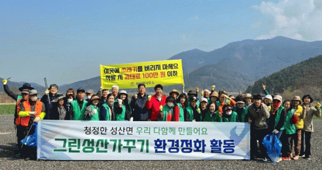 [NWS¹æ¼Û=Çѽ¸ñ ±âÀÚ] â³ç±º ¼º»ê¸éÀº Áö³­ 4ÀÏ ¸é³» ±â°ü¡¤´Üü°¡ ÇÕµ¿À¸·Î ´ÞâÀú¼öÁö µÑ·¹±æ ÀÏ¿ø¿¡¼­ º½¸ÂÀÌ È¯°æÁ¤È­È°µ¿À» ½Ç½ÃÇß´Ù°í ¹àÇû´Ù. ¼º»ê¸éÀº ±ú²ýÇÑ Ã»Á¤È¯°æÀ» ÀÚ¶ûÇϸç ÀüÀÔÀÚµéÀÇ ¹ß±æÀÌ À̾îÁö´Â °÷À¸·Î, ÀÌ¡¦