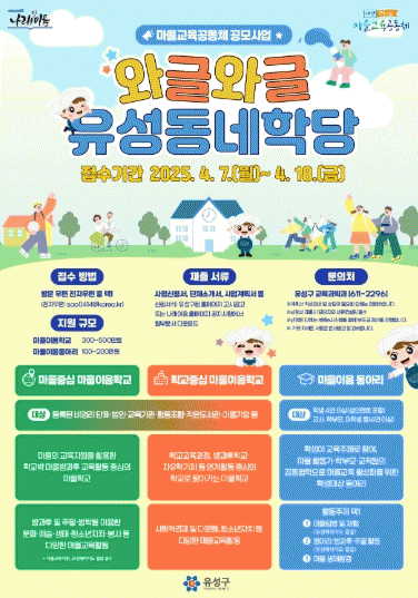 [NWS¹æ¼Û=Çѽ¸ñ ±âÀÚ]´ëÀü À¯¼º±¸´Â À¯¼º±¸ ³ª·¡ÀÌÀ½ ±³À°Áö±¸¿Í ´ëÀü±¤¿ª½Ã±³À°Ã» ÇູÀÌÀ½ ±³À°Áö±¸(±³À°¹ßÀüƯ±¸) »ç¾÷ÀÇ ÀÏȯÀÎ ¡®2025 ¿Í±Û¿Í±Û À¯¼ºµ¿³×Çд硯 ¸¶À»±³À°°øµ¿Ã¼ °ø¸ð »ç¾÷À» ÃßÁøÇÑ´Ù. À¯¼ºµ¿³×ÇдçÀº Çб³¿Í Áö¿ª¡¦