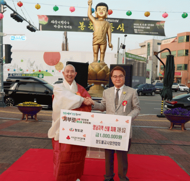 [NWS¹æ¼Û=Çѽ¸ñ ±âÀÚ]ûµµºÒ±³»ç¾Ï¿¬ÇÕȸ(ȸÀå ź¾Ï½º´Ô)´Â Áö³­ 4ÀÏ Ã»µµ ¹Ù¸£°Ô»ì±â°ø¿ø¿¡¼­ ¿­¸° ºÒ±â 2569³â ºÎó´Ô ¿À½Å³¯ ±â³ä ºÀÃà Á¡µî½Ä¿¡¼­ ¿µ³²Áö¿ª »êºÒ ÇÇÇØ º¹±¸¸¦ µ½±â À§ÇÑ ¼º±Ý 100¸¸ ¿øÀ» ±âŹÇß´Ù. À̹ø ±âºÎ´Â »êºÒ¡¦