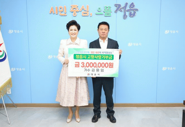 [NWS¹æ¼Û=Çѽ¸ñ ±âÀÚ]Æ®·ÎÆ® °¡¼öÀÌÀÚ Á¤À¾½Ã È«º¸´ë»ç·Î Ȱµ¿ ÁßÀÎ ±è¿ëÀÓ ¾¾°¡ Á¤À¾½Ã¿¡ °íÇâ»ç¶û±âºÎ±Ý 300¸¸¿øÀ» ±âŹÇϸç Áö¿ª ¹ßÀüÀ» ÇâÇÑ Áö¼ÓÀûÀÎ ÀÀ¿øÀ» À̾´Ù. ½Ã´Â 4ÀÏ °¡¼ö ±è¿ëÀÓ ¾¾°¡ °íÇâ»ç¶û±âºÎ±Ý 300¸¸¿øÀ» Àü´ÞÇß¡¦