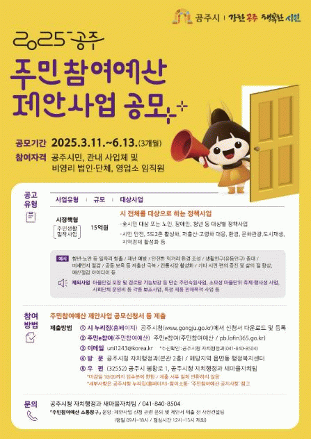 [»çȸ] °øÁÖ½Ã, ³»³âµµ ÁÖ¹ÎÂü¿©¿¹»ê Á¦¾È»ç¾÷ °ø¸ð ½ÃÇà |2025. 04.07