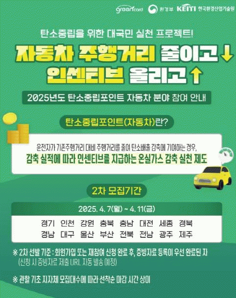 [NWS¹æ¼Û=Çѽ¸ñ ±âÀÚ]ÆÄÁֽô ¿À´Â 11ÀϱîÁö ÀÚµ¿Â÷ ÁÖÇà°Å¸® °¨Ãà½ÇÀû¿¡ µû¶ó ƯÀüÀ» Áö±ÞÇÏ´Â ÀÚµ¿Â÷ ź¼ÒÁ߸³Æ÷ÀÎÆ®Á¦ Âü¿©ÀÚ¸¦ ¼±Âø¼øÀ¸·Î Ãß°¡ ¸ðÁýÇÑ´Ù°í ¹àÇû´Ù. ÀÚµ¿Â÷ ź¼ÒÁ߸³Æ÷ÀÎÆ®Á¦´Â ¿îÀüÀÚÀÇ ÀÚµ¿Â÷ ÁÖÇà°Å¸® °¨Ãà ½ÇÀû¡¦