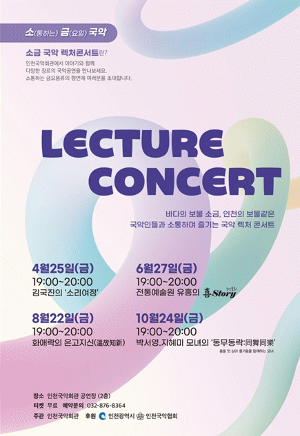 [NWS¹æ¼Û=Çѽ¸ñ ±âÀÚ]ÀÎõ±¤¿ª½Ã´Â ÀÎõ±¹¾Çȸ°ü¿¡¼­ ¡®2025 ¼Ò(ÅëÇÏ´Â) ±Ý(¿äÀÏ) ±¹¾Ç Äܼ­Æ®¡¯¸¦ ÃÑ 4Â÷·Ê¿¡ °ÉÃÄ °³ÃÖÇÑ´Ù°í ¹àÇû´Ù. ¿ÃÇØ·Î 3ȸ¸¦ ¸ÂÀÌÇÑ À̹ø Çà»ç´Â ±¹¾Ç°ú Àι®ÇÐ °­¿¬À» °áÇÕÇÑ Æ¯º° ±âȹ °ø¿¬À¸·Î, 4¿ù 25ÀÏ Ã¹¡¦