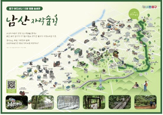 [NWS¹æ¼Û=Çѽ¸ñ ±âÀÚ]¼­¿ï Áß±¸°¡ ±¸¹Î Á¤Ã¥ ¸¸Á·µµ 1À§¿¡ ºû³ª´Â¡®³²»êÀÚ¶ô½£±æ¡¯À» ´©±¸³ª ¼Õ½±°Ô ã°í Áñ±æ ¼ö ÀÖµµ·Ï Áß±¸ Àü¿ª ÃÑ 51°³ ÄÚ½º¸¦ ´ãÀº ¾È³»Áöµµ ¡®³²»êÀÌÀ½¡¯À» Á¦ÀÛÇß´Ù. ³²»êÀÚ¶ô½£±æÀº Áß±¸ ¾îµð¼­³ª 15ºÐÀÌ¸é ´ê¡¦