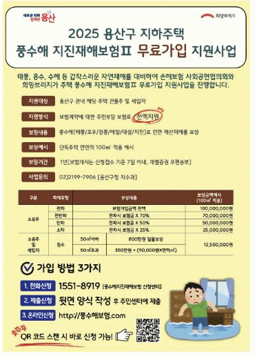 [NWS¹æ¼Û=Çѽ¸ñ ±âÀÚ]¼­¿ï ¿ë»ê±¸°¡ ±âÈÄ º¯È­·Î ÀÎÇØ Áõ°¡ÇÏ´Â ÀÚ¿¬ÀçÇØ·ÎºÎÅÍ ÁֹεéÀÇ Àç»êÀ» º¸È£Çϱâ À§ÇØ ¡®Ç³¼öÇØ º¸Ç衯 °¡ÀÔÀ» Àû±Ø ÃßÁøÇϰí ÀÖ´Ù. dz¼öÇØ º¸ÇèÀº ÅÂdz, È«¼ö, ÁöÁø µî ÀÚ¿¬ÀçÇØ·Î ÀÎÇÑ Àç»ê ÇÇÇØ¸¦ ½ÇÁúÀûÀ¸¡¦