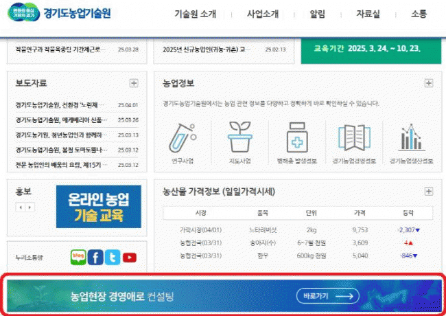 [»çȸ] °æ±âµµ³ó¾÷±â¼ú¿ø, '³ó¾÷°æ¿µ ÇöÀå¾Ö·Î ÄÁ¼³ÆÃ' ¿Â¶óÀÎ ½Åû Á¢¼ö ½ÃÀÛ |2025. 04.07