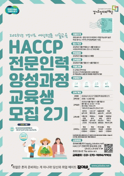 [»çȸ] °æ±âµµ, ÇØ½ç(HACCP) Àü¹®Àη ¾ç¼º°úÁ¤ ±³À°»ý ¸ðÁý |2025. 04.07